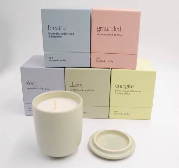 Stylish ceramic aromatherapy candle with a long-lasting, calming fragrance—perfect for décor or gifts.